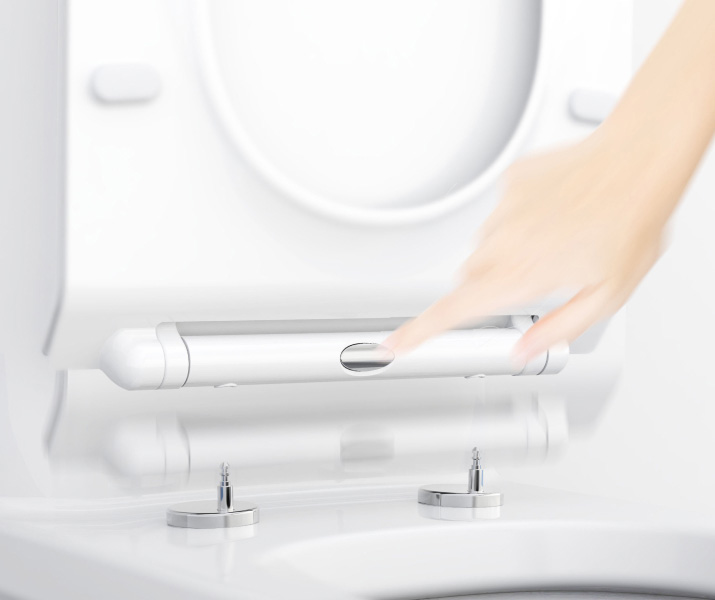The toilet cover has a silent and soft-close function, which can be quickly removed with the push of a button. The design of